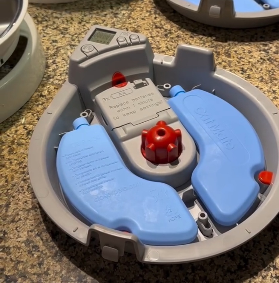 La Cat Mate C500 est une gamelle automatique conçue pour distribuer jusqu’à cinq repas. Elle est équipée de deux blocs réfrigérants qui maintiennent les aliments frais, même lorsque vous êtes absent(e) toute la journée. Dotée d’un minuteur programmable, elle permet de délivrer des portions précises à des heures définies, idéal pour organiser les repas de votre chat selon ses besoins spécifiques.