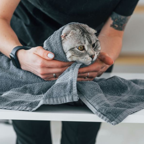 - La serviette : envelopper le chat pour limiter ses mouvements sans douleur.