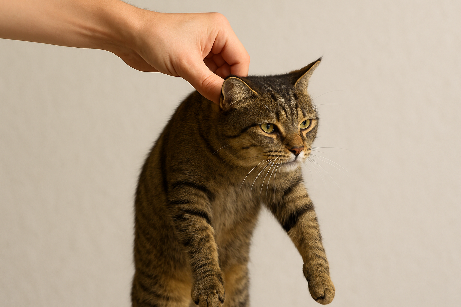 - Le chat se fige par sidération (réponse de peur), pas par apaisement.